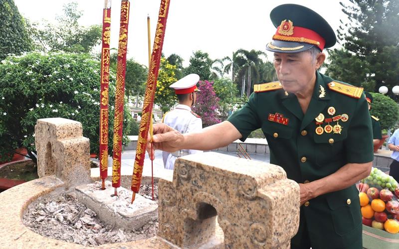Đại tá Nguyễn Văn Thủy dâng hương viếng liệt sĩ tại Bia tưởng niệm liệt sĩ Lữ đoàn Đặc công 113