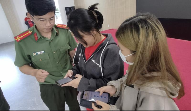 Cán bộ Phòng Quản lý xuất nhập cảnh (Công an tỉnh) hướng dẫn giảng viên, sinh viên Trường Đại học Lạc Hồng làm thủ tục đăng ký cấp hộ chiếu trực tuyến