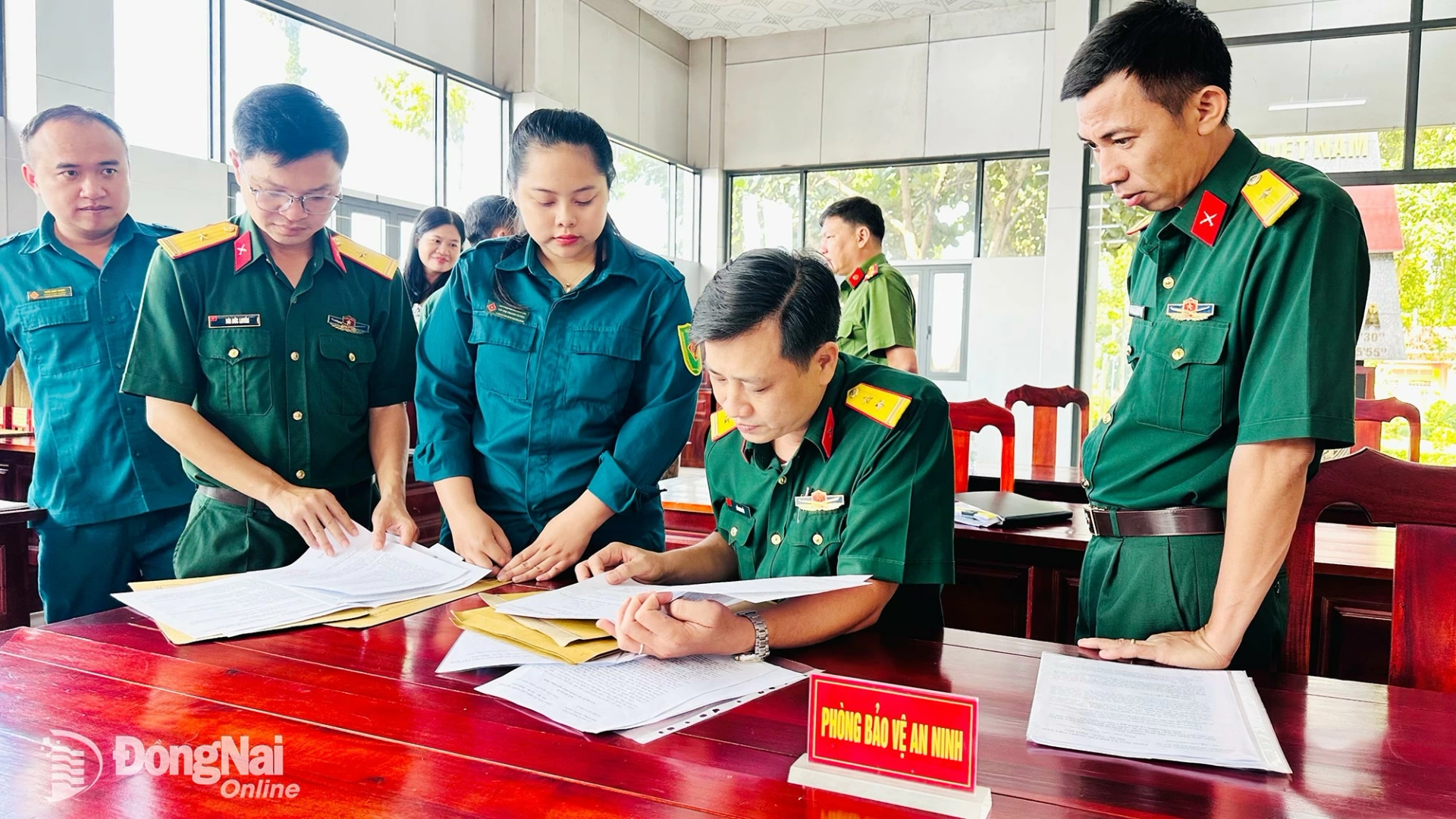 Đoàn công tác của Quân khu 7 kiểm tra văn bản, hồ sơ liên quan về tuyển chọn và gọi công dân nhập ngũ năm 2026 tại tỉnh Đồng Nai. Ảnh: Văn Chung