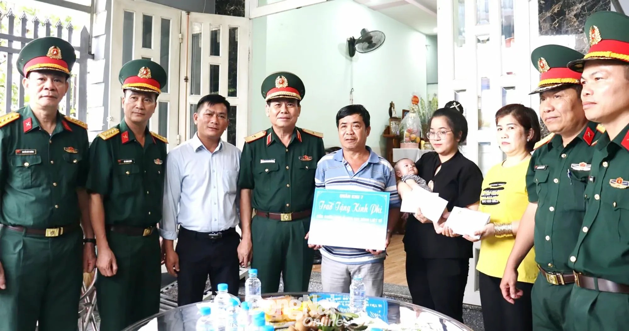 Phó Tư lệnh Quân khu 7 cũng trao tặng 80 triệu đồng xây dựng nhà tình nghĩa quân dân cho gia đình thân nhân liệt sĩ Lâm Hoàng Nhật.