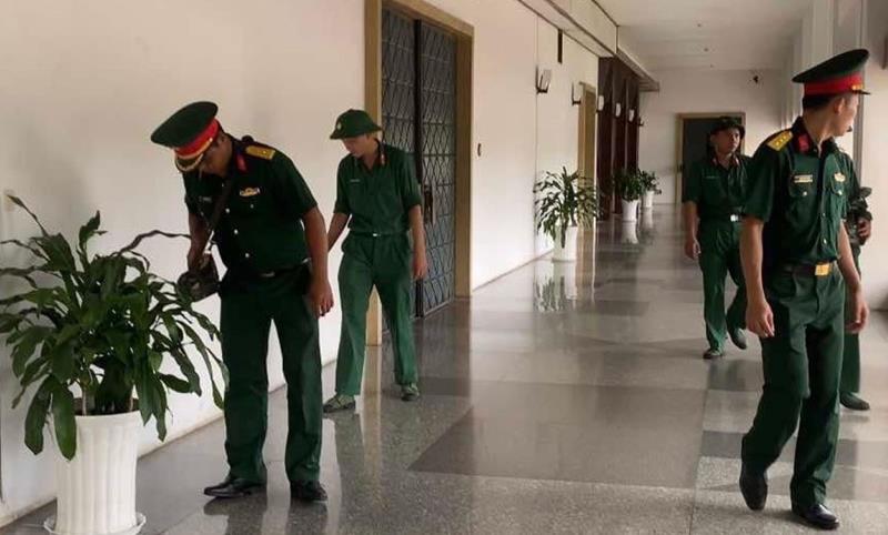 Cán bộ chiến sĩ Tiểu đoàn 907 trinh sát, kiểm tra các loại hoá chất độc, phóng xạ xung quanh hội trường Thống Nhất nhằm bảo đảm an toàn Lễ Quốc tang
