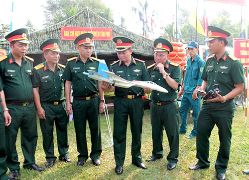 Mô hình sáng chế máy bay chiến đấu F22 và tên lửa hành trình do đồng chí Nguyễn Xuân Tâm và nhóm kỹ thuật Ban Chỉ huy quân sự (CHQS) huyện Tân Phú nghiên cứu. Thượng tá Phạm Hồng Tuyên, Chính trị viên, Ban CHQS huyện cho hay, mô hình này xuất phát từ thực tiễn huấn luyện bắn các mục tiêu xa, hiện đại, phục vụ huấn luyện tại chỗ, diễn tập và trưng bày.