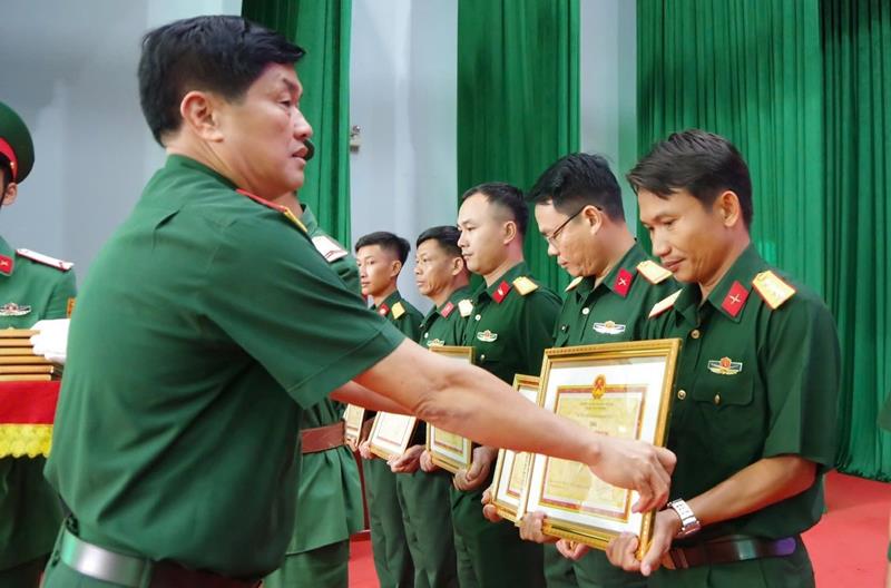 Đại tá Lê Phùng Lộc khen thưởng các tập thể, cá nhân có thành tích trong thực hiện Cuộc vận động 50. Ảnh: Trần Phan