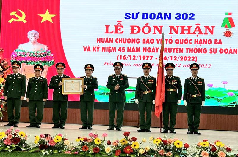 Thừa ủy quyền của Chủ tịch nước, Thượng tướng Võ Minh Lương trao Huân chương Bảo vệ Tổ quốc hạng Ba cho Sư đoàn 302