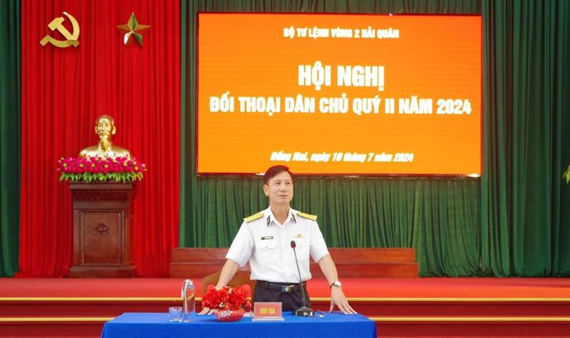 Phó Chính ủy Vùng 2 Hải quân lưu ý, các đơn vị trong toàn Vùng nhất là các đơn vị tại 2 địa bàn Đồng Nai và Bà Rịa Vũng Tàu tiếp tục quán triệt sâu sắc tình hình nhiệm vụ, cấp ủy, chỉ huy cơ quan, đơn vị luôn cầu thị, tôn trọng, lắng nghe ý kiến và nắm bắt tâm tư, tình cảm cũng như những khó khăn, vướng mắc của cấp dưới trên tinh thần nguyên tắc, có giải pháp giải quyết hợp tình, hợp lý góp phần xây dựng cơ quan, đơn vị thật sự đoàn kết thống nhất, hoàn thành xuất sắc nhiệm vụ được giao.