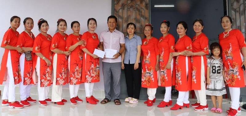 Hội Phụ nữ và MTTQ xã Sông Nhạn tặng quà cho gia đình anh