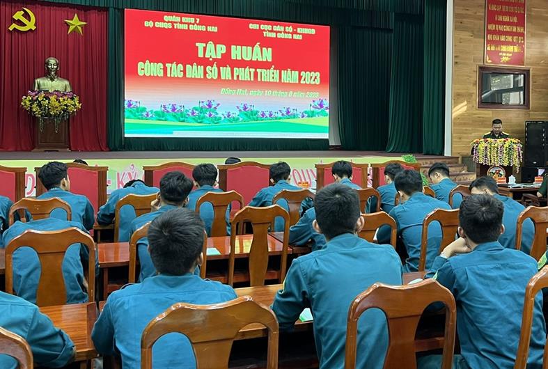 (CTT-Đồng Nai) Phát biểu khai mạc buổi tập huấn công tác dân số và phát triển năm 2023 cho 250 cán bộ chiến sĩ, dân quân thường trực thuộc lực lượng vũ trang (LLVT) tỉnh diễn ra ngày 10-8, Đại tá Bùi Đăng Ninh, Chính ủy Bộ Chỉ huy quân sự tỉnh cho rằng, công tác dân số gia đình và trẻ em là một trong những yếu tố quyết định sự phát triển bền vững của đất nước. Vì vậy, công tác này luôn được Đảng, Nhà nước, Quân ủy Trung ương, Bộ Quốc phòng quan tâm, coi là nhiệm vụ quan trọng của chiến lược phát triển đất nước.