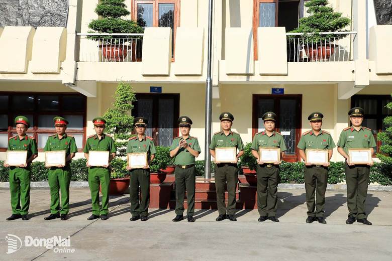 | Thiếu tướng Nguyễn Đức Hải, Ủy viên Ban Thường vụ Tỉnh ủy, Giám đốc Công an tỉnh Đồng Nai tặng giấy khen cho 1 tập thể, 11 cá nhân lập thành tích xuất sắc trong công tác. Ảnh: H.B |