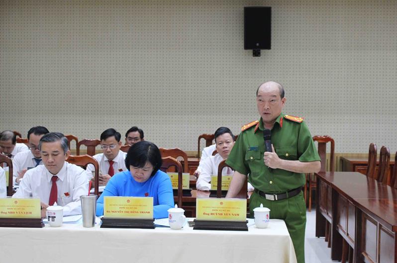 Trưởng Công an TP.Biên Hòa Huỳnh Yên Nam trả lời chất vấn đại biểu HĐND thành phố liên quan đến vấn đề đảm bảo an ninh trật tự an toàn xã hội trên địa bàn TP.Biên Hòa