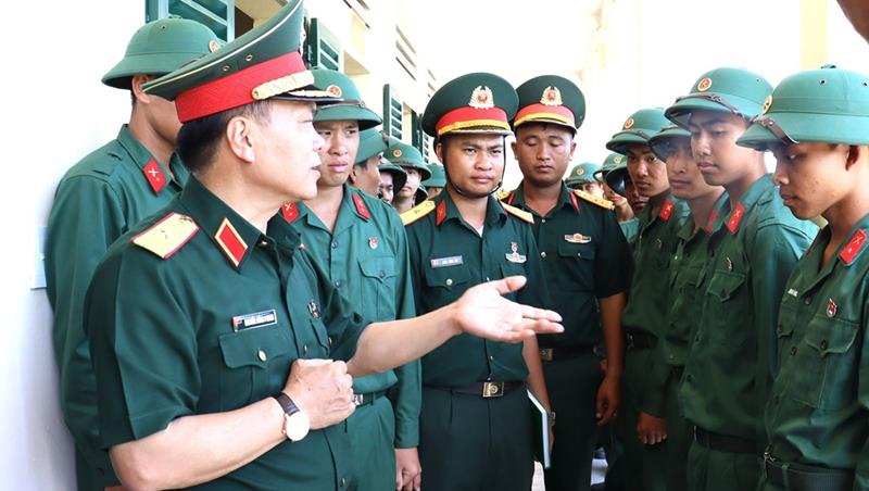Thiếu tướng Nguyễn Hồng Phong động viên chiến sĩ mới đến từ Tân Phú, Đồng Nai đang huấn luyện tại Lữ đoàn 96