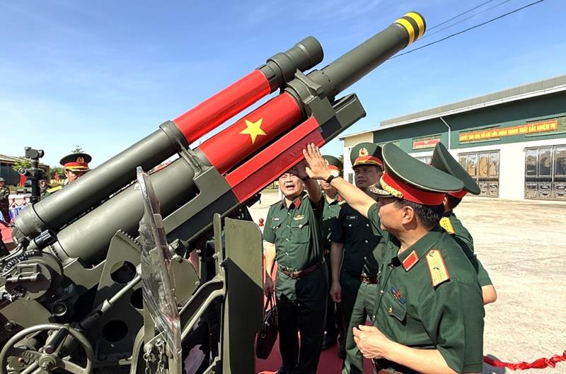 Thiếu tướng Nguyễn Hồng Phong, Tư lệnh Pháo binh kiểm tra đội pháo lễ Lữ đoàn 96 được giao thực hiện nhiệm vụ huấn luyện A50