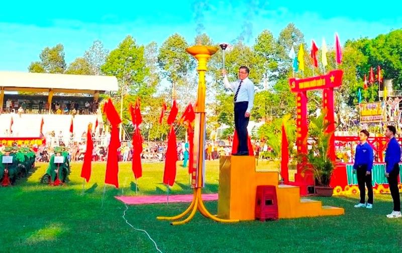 Ủy viên Ban TVTU, Bí thư Huyện ủy Long Thành Dương Minh Dũng thắp lửa truyền thống.