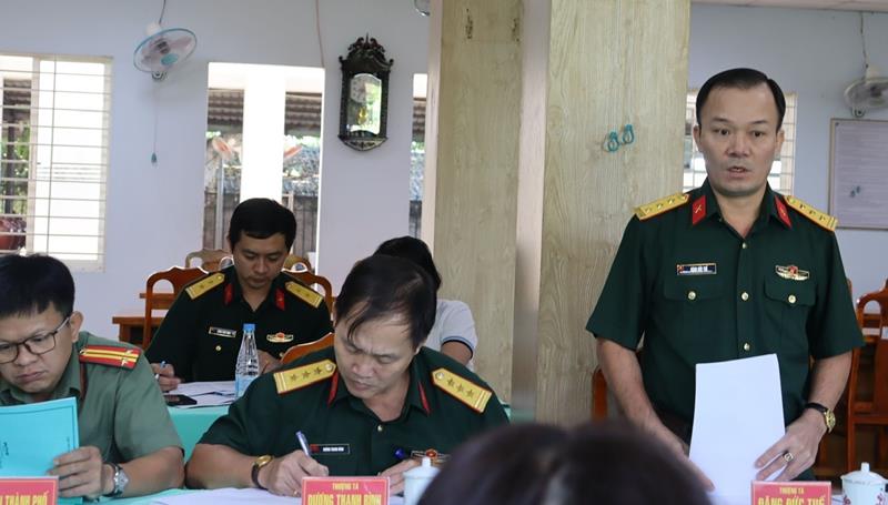Thượng tá Đặng Đức Tuế, Chỉ huy trưởng Ban Chỉ huy quân sự, Phó Chủ tịch thường trực Hội đồng Nghĩa vụ quân sự thành phố phát biểu tại hội nghị