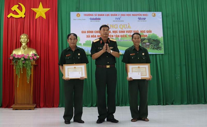 Thiếu tướng Đỗ Văn Lực, Phó hiệu trưởng nhà trường khen thưởng Hội Cựu chiến binh xã Hòa Hiệp