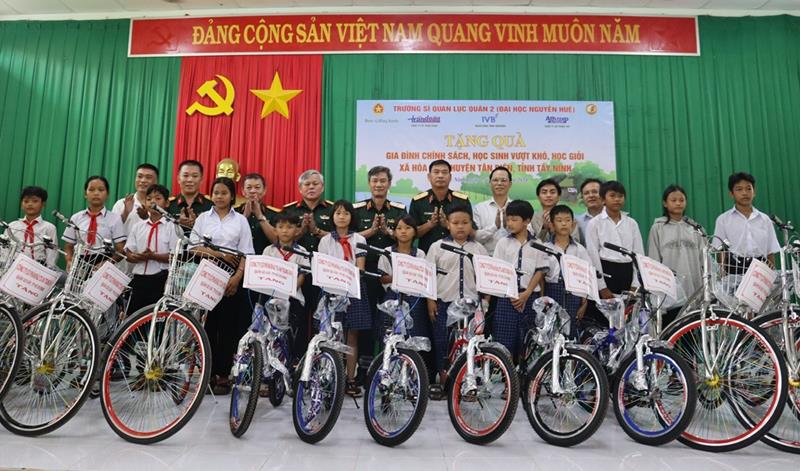 Sau lễ dâng hương, đoàn công tác của nhà trường cùng các nhà tài trở đã trao tặng 40 xe đạp cho các cháu học sinh vượt khó học giỏi; khen thưởng Hội Cựu chiến binh xã Hòa Hiệp - đơn vị đang thực hiện nhiệm vụ quản lý, bảo vệ khu lưu niệm nhà trường tại xã Hòa Hiệp, nơi ra đời nhà trường cách đây 63 năm; tặng quà gia đình chính sách.