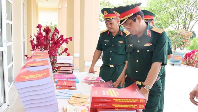 Thiếu tướng Nguyễn Đức Dinh kiểm tra nội dung chuẩn bị giáo dục chính trị tại Phòng Hồ Chí Minh