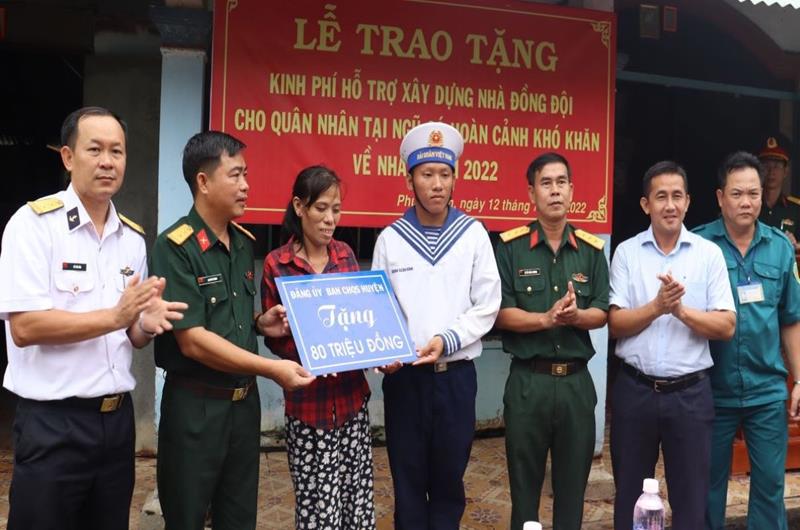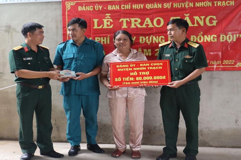 Đảng ủy, Ban CHQS H.Nhơn Trạch trao tặng kinh phí xây dựng nhà hậu phương quân đội cho đồng chí Đoàn Xuân Bình, quân nhân tại ngũ tại Trung tâm Huấn luyện Vùng 2 Hải quân