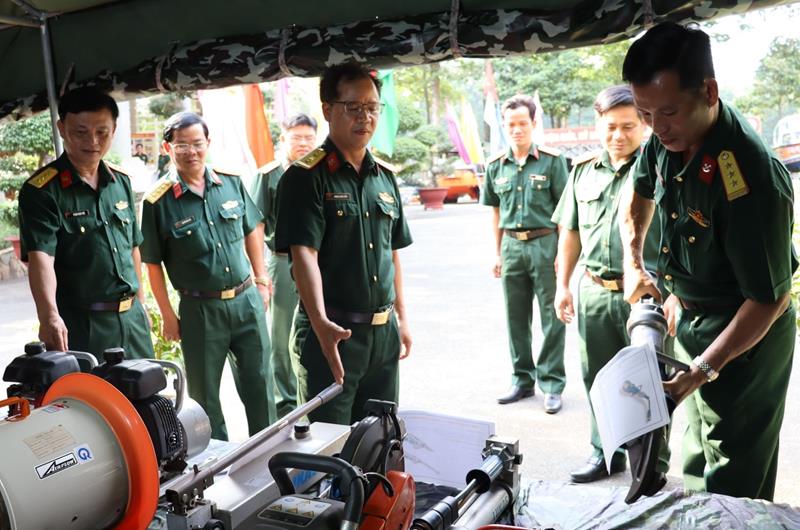 Các đại biểu thăm quan mô hình học cụ nâng cao chất lượng huấn luyện trưng bày tại hội nghị