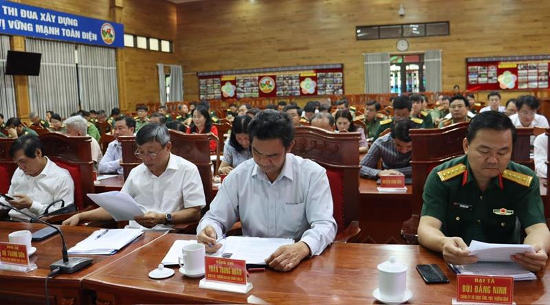 Phát biểu chỉ đạo tại hội nghị, Phó Bí thư thường trực Tỉnh ủy Hồ Thanh Sơn biểu dương kết quả diễn tập KVPT của 4 địa phương cấp huyện. Phó Bí thư thường trực Tỉnh ủy lưu ý, các cơ quan, đơn vị, địa phương tiếp tục vận hành cơ chế theo Nghị quyết 28/NQ-TƯ của Bộ Chính trị và các văn bản hướng dẫn trong KVPT. Tiếp tục thực hiện 4 nhiệm vụ trọng tâm, nghiên cứu các quy định hướng dẫn, vận dụng hiệu quả vào thực tiễn địa phương, cơ quan, đơn vị theo Nghị quyết 28/NQ-TW, ngày 22-9-2008 của Bộ Chính trị (khóa X); Nghị định số 21/2019/NĐ-CP, ngày 22-2-2019 của Chính phủ về xây dựng khu vực phòng thủ với nhiều nội dung phát triển mới để tiếp tục nghiên cứu, tham mưu thực hiện hiệu quả, chủ động, sẵn sàng mọi mặt bảo vệ Tổ quốc từ sớm, từ xa...