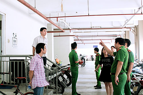 Kiểm tra PCCC tại khu nhà xe chung cư Amber Court.
