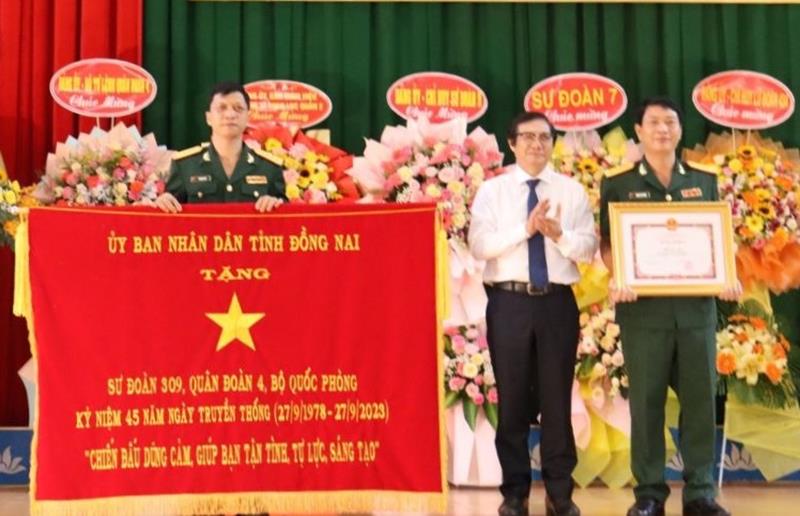 Dịp này, tỉnh Đồng Nai trao tặng Sư đoàn Bức trướng có nội dung: Sư đoàn 309, Quân đoàn 4, Bộ Quốc phòng kỷ niệm 45 năm Ngày Truyền thống 27/9/1978- 27/9/2023 “Chiến đấu dũng cảm, giúp bạn tận tình, tự lực sáng tạo” và Bằng khen cho tập thể Sư đoàn 309 có thành tích trong xây dựng đơn vị vững mạnh toàn diện, “mẫu mực tiêu biểu”, hoàn thành xuất sắc nhiệm vụ.