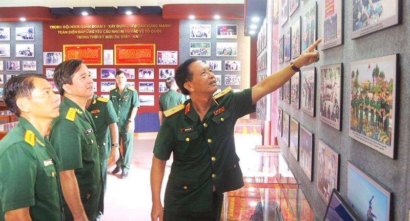 Thiếu tướng Trương Ngọc Hợi và cán bộ Quân đoàn 4, Sư đoàn 309 thăm quan nhà truyền thống sư đoàn