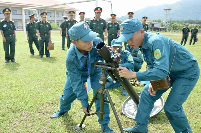 Đại tá Vũ Văn Điền chứng kiến nội dung thi khẩu đội pháo chiếm lĩnh trận địa của lực lượng vũ trang H.Nhơn Trạch tham gia hội thao tại Trung đoàn Đồng Nai (cơ sở H.Xuân Lộc)