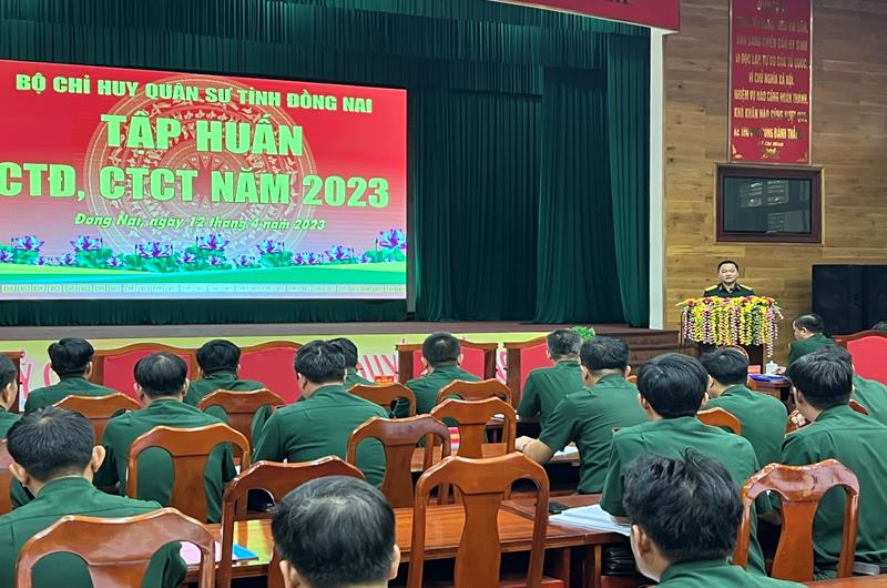 Trong hai ngày 12 và 13-4, cán bộ chính trị các cơ quan, đơn vị, địa phương thuộc LLVT tỉnh sẽ được tập huấn các chuyên đề về CTĐ, CTCT gồm: Hướng dẫn thực hiện công tác quản lý tư tưởng quân nhân, nắm và định hướng dư luận trong QĐND Việt Nam; hướng dẫn xây dựng kế hoạch giáo án, kiểm tra, đánh giá kết quả trong giáo dục chính trị cho các đối tượng theo quy định; một số nội dung thực hiện Quy định số 1663-QĐ/QUTW ngày 21-12-2022 của Quân ủy Trung ương về luân chuyển cán bộ trong QĐND Việt Nam; Thông tư số 02/2023/TT-BQP ngày 12-1-2023 của Bộ Quốc phòng quy định về đối tượng, tiêu chuẩn đào tạo cán bộ trong QĐND Việt Nam…