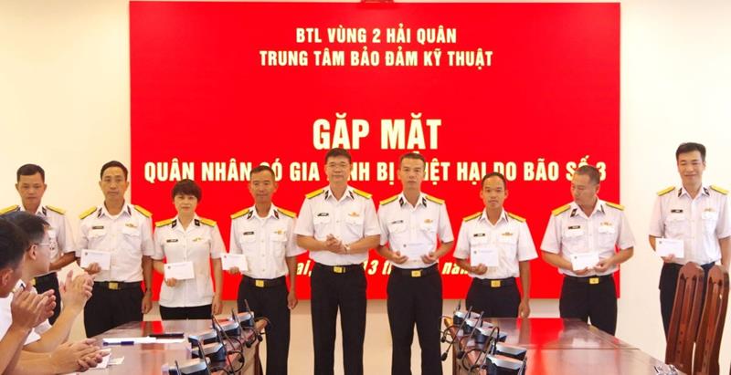 Theo các đơn vị của Bộ Quốc phòng đóng trên địa bàn, 100% CBCS phải trực chiến không về được nhưng gia đình các anh ở các tỉnh phía Bắc bị ảnh hưởng do thiên tai được cấp ủy, chỉ huy các đơn vị động viên, hỗ trợ. Đại tá Lại Thế Công, Bí thư Đảng ủy, Chính ủy Trung tâm Bảo đảm kỹ thuật Vùng 2 Hải quân cho biết, trong cơ bão số 3, đơn vị có tổng cộng 12 quân nhân có gia đình, bố mẹ, vợ, con cư ngụ tại các tỉnh thành phía Bắc, chủ yếu là thành phố Hải Phòng, tỉnh Quảng Ninh bị thiệt hại nặng.