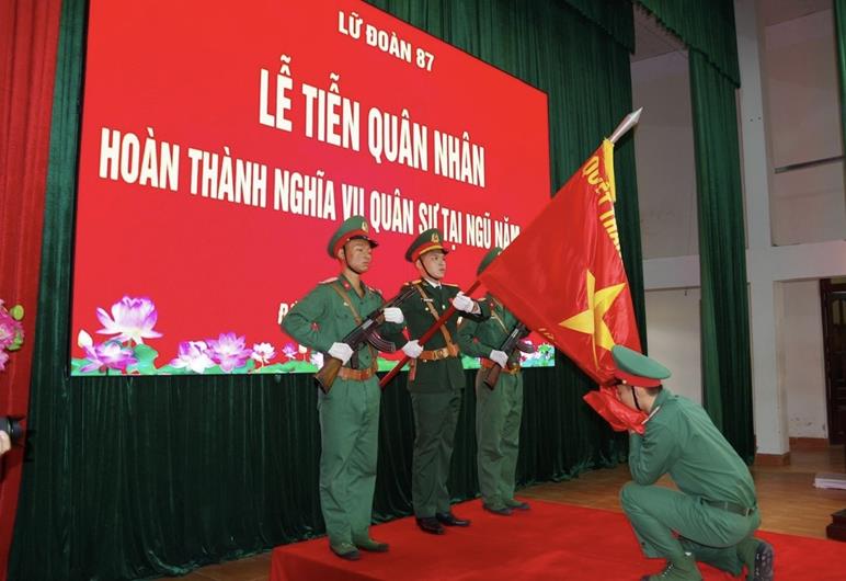 Quân nhân hoàn thành Nghĩa vụ quân sự Lữ đoàn 87 tuyên thệ dưới Quân kỳ