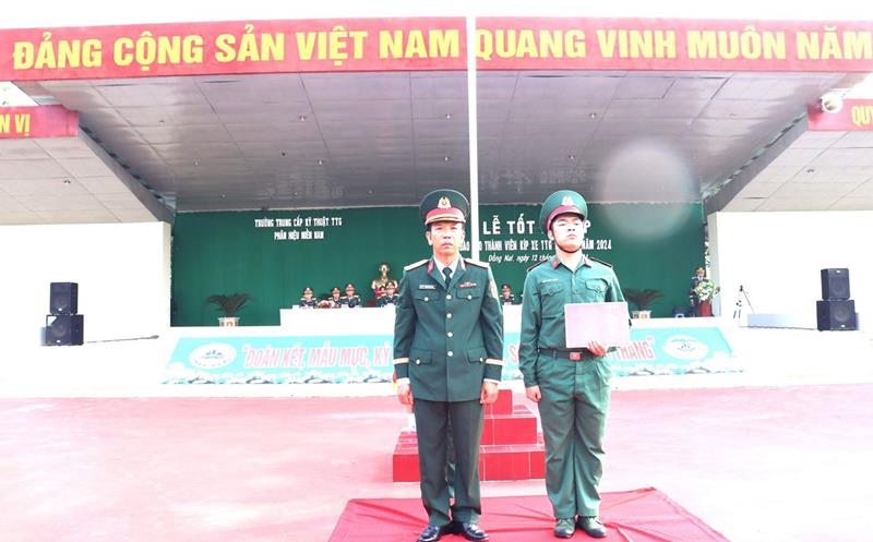 Đại tá Phạm Huy Tuấn trao bằng tốt nghiệp cho học viên xuất sắc trong khóa học