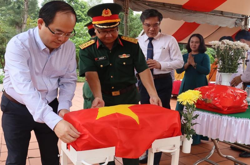 Phó Bí thư Tỉnh ủy Quản Minh Cường làm thủ tục dém quân kỳ lên quách hài cốt