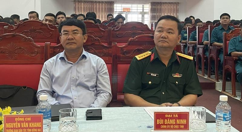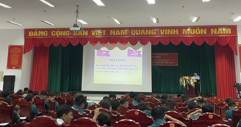 (CTT- Đồng Nai) - Phát biểu khai mạc lớp bồi dưỡng kiến thức dân tộc cho 205 sĩ quan, quân nhân chuyên nghiệp và cán bộ Ban Chỉ huy quân sự (CHQS) cấp xã trong lực lượng vũ trang tỉnh ngày 15-11, Đại tá Bùi Đăng Ninh, Chính ủy Bộ CHQS tỉnh cho biết, lớp bồi dưỡng nhằm trang bị cho đội ngũ cán bộ trực tiếp, thường xuyên làm công tác dân vận nắm vững những nội dung cơ bản về kiến thức dân tộc, văn hóa dân tộc thiểu số, chính sách dân tộc của Đảng và Nhà nước cũng như một số đặc điểm cơ bản của các dân tộc thiểu số trên địa bàn Đồng Nai.
