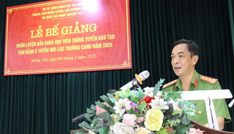 Đại tá Phùng Văn Chiến, Phó Tư lệnh CSCĐ chúc mừng, biểu dương kết quả huấn luyện đầu khóa đồng thời đề nghị, học viên sau khi trở về các nhà trường học tập tiếp tục phát huy những kết quả, thành tích trong đợt huấn luyện đầu khóa, vượt qua khó khăn, nỗ lực rèn luyện hoàn thành tốt, xuất sắc mục tiêu học tập, hoàn thành tốt kế hoạch học tập, phấn đấu trở thành những người công an cách mạng vừa hồng, vừa chuyên, xứng đáng lực lượng nòng cốt, góp phần bảo vệ Đảng, Nhà nước, Nhân dân.