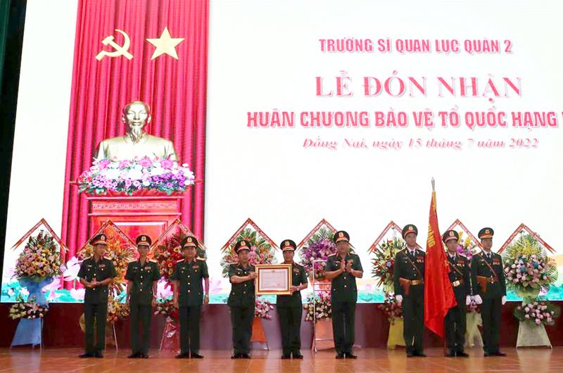 Thượng tướng Phạm Hoài Nam thừa ủy quyền của Chủ tịch nước trao tặng nhà trường Huân chương Bảo vệ Tổ quốc hạng Nhì