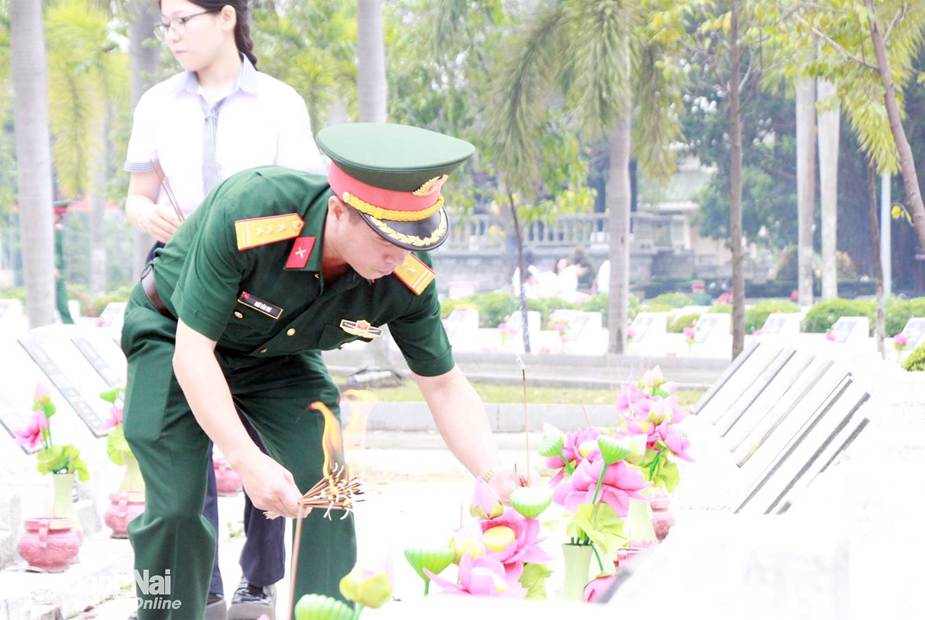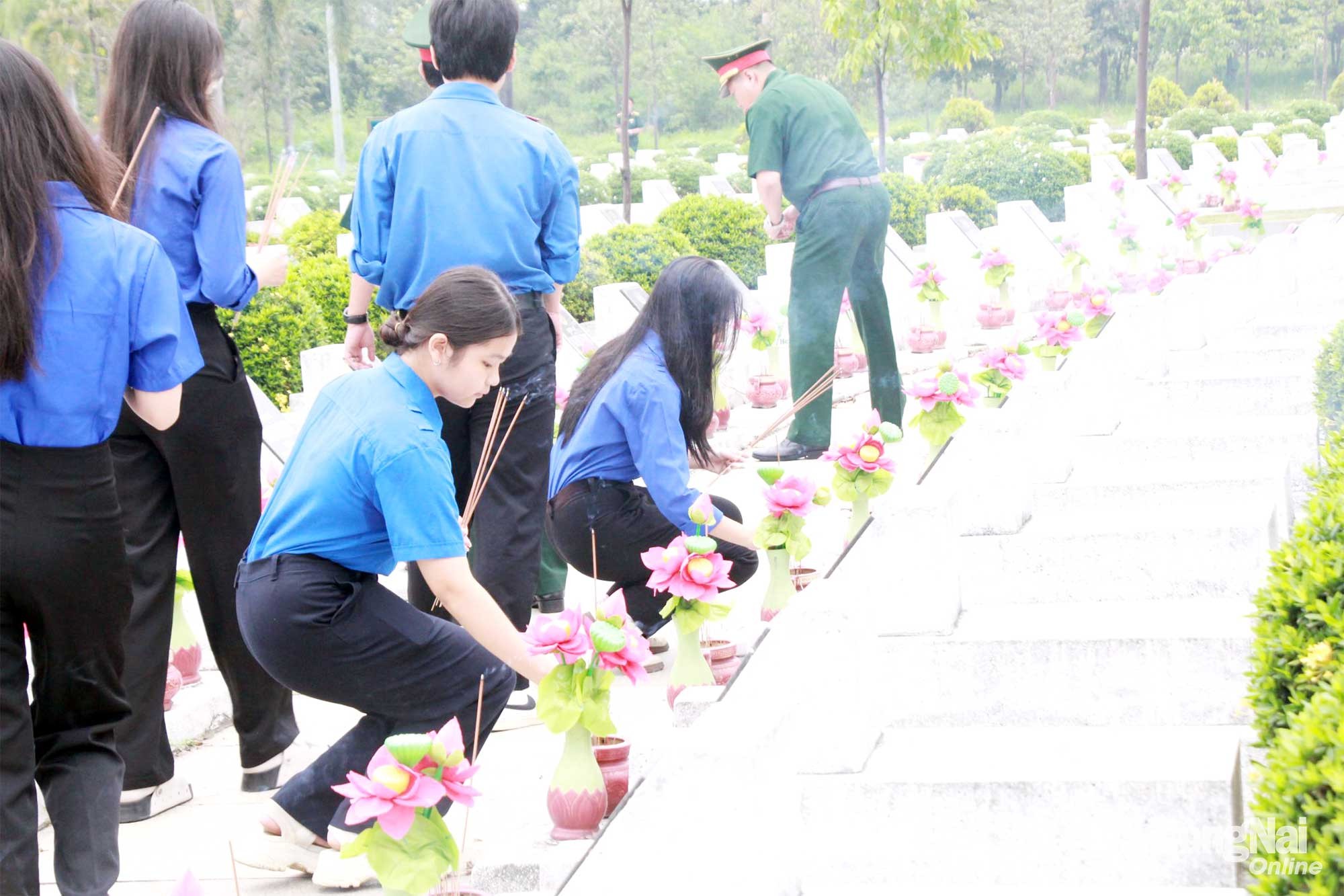 Đoàn viên, thanh niên tỉnh Đồng Nai dâng hương các mộ phần liệt sĩ. Ảnh: Nga Sơn
