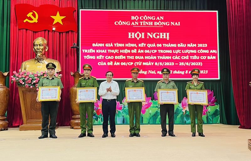 Đồng Nai là 1 trong 19 tỉnh, thành phố trên toàn quốc được Bộ trưởng Bộ Công an gửi thư khen chúc mừng. Dịp này, UBND tỉnh tặng bằng khen cho 5 tập thể và 12 cá nhân, Cục Cảnh sát Quản lý hành chính về trật tự xã hội cũng trao gấy khen cho 1 cá nhân và 1 tập thể, Công an tỉnh trao giấy khen cho 70 tập thể và 156 cá nhân có thành tích xuất sắc trong việc thực hiện Đề án 06/CP.