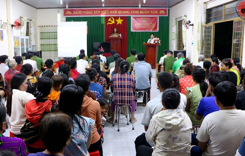 Tại buổi tuyên truyền, cán bộ Công an huyện đã tuyên truyền vận động quần chúng Nhân dân chấp hành nghiêm túc quy định pháp luật và tích cực tham gia phát hiện, tố giác tội phạm, hành vi vi phạm về vũ khí, vật liệu nổ, công cụ hỗ trợ và pháo. Công an huyện cũng đã thông tin về các phương thức, thủ đoạn hoạt động của các loại tội phạm nhất là tội phạm lừa đảo trên không gian mạng để bà con nhân dân biết, chấp hành các quy định của pháp luật, nâng cao ý thức tự phòng, tránh; tác hại của việc tàng trữ, sử dụng vũ khí, vật liệu nổ, công cụ hỗ trợ trái phép…