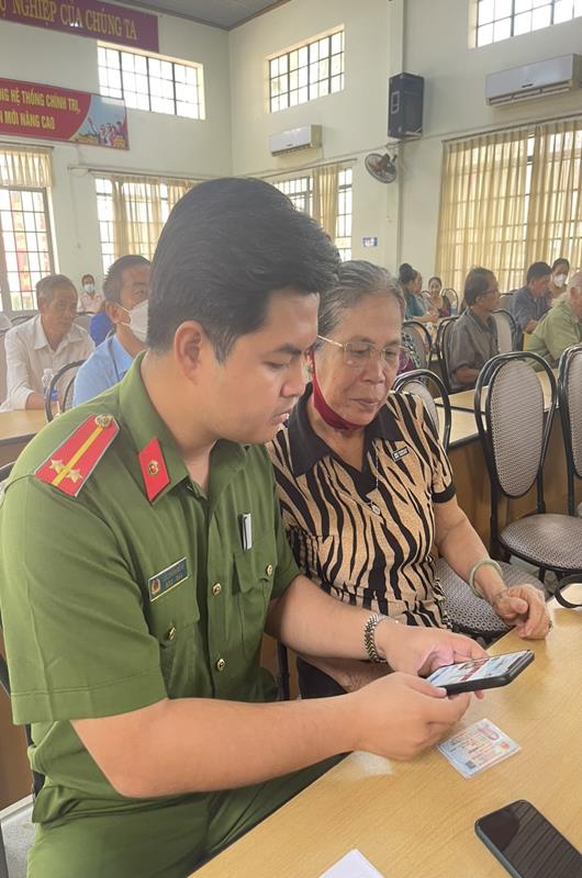 Công an xã Bàu Cạn (H.Long Thành) hướng dẫn người dân kích hoạt tài khoản định danh điện tử trên ứng dụng VNeID