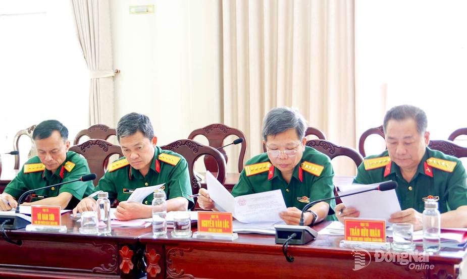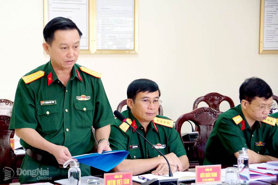 Đại tá Huỳnh Việt Tâm, Phó Bí thư Đảng ủy, Sư đoàn trưởng Sư đoàn 309 đóng góp ý kiến vào dự thảo nghị quyết. Ảnh: Thái Hùng