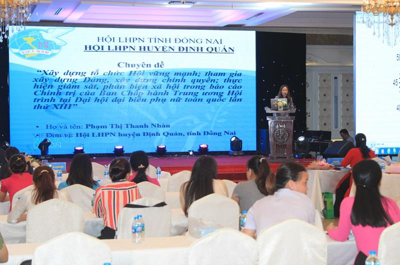 16 thí sinh đến từ Hội LHPN các huyện, thành phố và đơn vị trực thuộc tham gia hội thi đã trải qua 3 phần thi: soạn đề cương thuyết trình, thuyết trình trước Ban giám khảo theo chủ đề đã chọn trong thời gian tối đa 15 phút và trả lời câu hỏi do Ban giám khảo đặt ra.