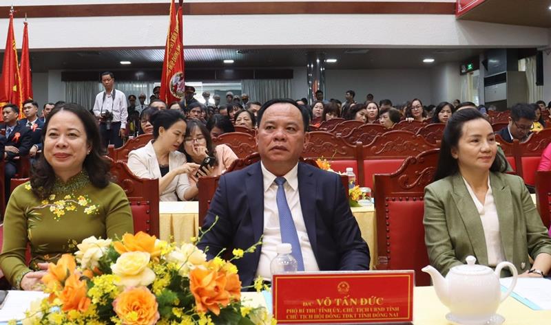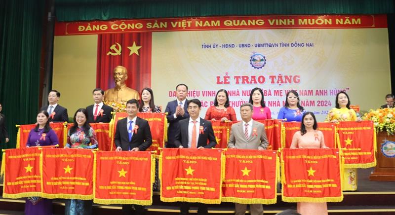 (CTT-Đồng Nai) - Sáng 25-9, các đồng chí: Võ Thị Ánh Xuân, Ủy viên Trung ương Đảng, Phó Chủ tịch nước Cộng hòa xã hội chủ nghĩa Việt Nam, Phó Chủ tịch thứ nhất Hội đồng Thi đua khen thưởng (TĐKT) Trung ương; Phó Bí thư Thường trực Tỉnh ủy Hồ Thanh Sơn; Phó Bí thư Tỉnh ủy, Trưởng Đoàn đại biểu Quốc hội tỉnh Quản Minh Cường; Phó Bí thư Tỉnh ủy, Chủ tịch UBND tỉnh, Chủ tịch Hội đồng TĐKT tỉnh Võ Tấn Đức; các đồng chí Ủy viên Ban Thường vụ Tỉnh ủy: Thái Bảo, Chủ tịch HĐND tỉnh; Cao Văn Quang, Chủ tịch Ủy ban MTTQ Việt Nam tỉnh đã dự Lễ trao tặng Danh hiệu vinh dự Nhà nước “Bà mẹ Việt Nam anh hùng” và các phần thưởng cấp Nhà nước năm 2024.
