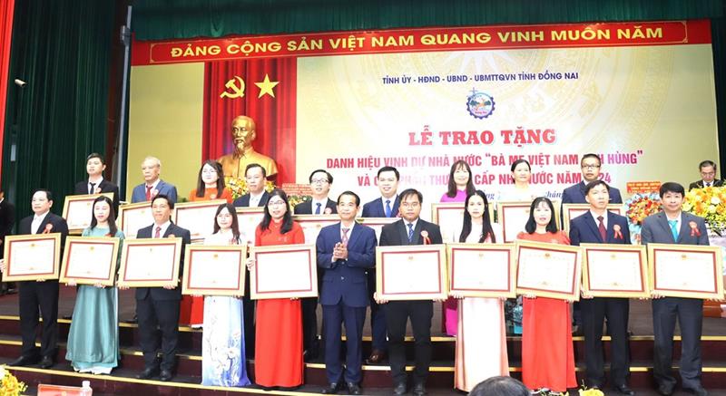 Tại buổi lễ có 179 tập thể, cá nhân được trao tặng các phần thưởng cao quý năm 2024. Trong đó có gia đình 3 mẹ được truy tặng Danh hiệu Nhà nước Bà mẹ Việt Nam Anh hùng. 5 Huân chương Lao động (1 hạng Nhất, 4 hạng Nhì) cho cá nhân cùng nhiều phần thưởng cao quý khác.