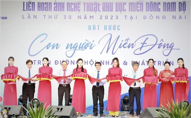 Phó Chủ tịch UBND tỉnh Nguyễn Sơn Hùng cùng các đại biểu cắt băng khai mạc Liên hoan ảnh nghệ thuật khu vực miền Đông Nam bộ lần thứ 30 năm 2023.
