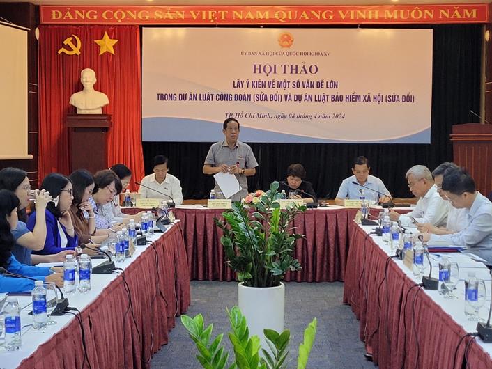 (CTT-Đồng Nai) - Ủy ban xã hội của Quốc hội vừa tổ chức hội thảo lấy ý kiến về một số vấn đề lớn trong dự thảo Luật Công đoàn (sửa đổi) và dự án Luật Bảo hiểm xã hội (sửa đổi). Bà Nguyễn Thúy Anh, Ủy viên Trung ương Đảng, Ủy viên Ủy ban Thường vụ Quốc hội, Chủ nhiệm Ủy ban xã hội của Quốc hội chủ trì hội thảo.