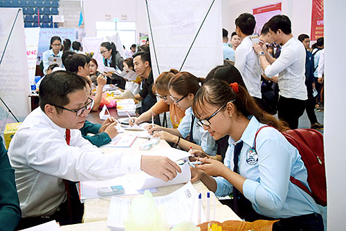 Sinh viên Trường đại học Đồng Nai tham gia tuyển dụng tại Ngày hội việc làm cho sinh viên lần thứ 2-2018.