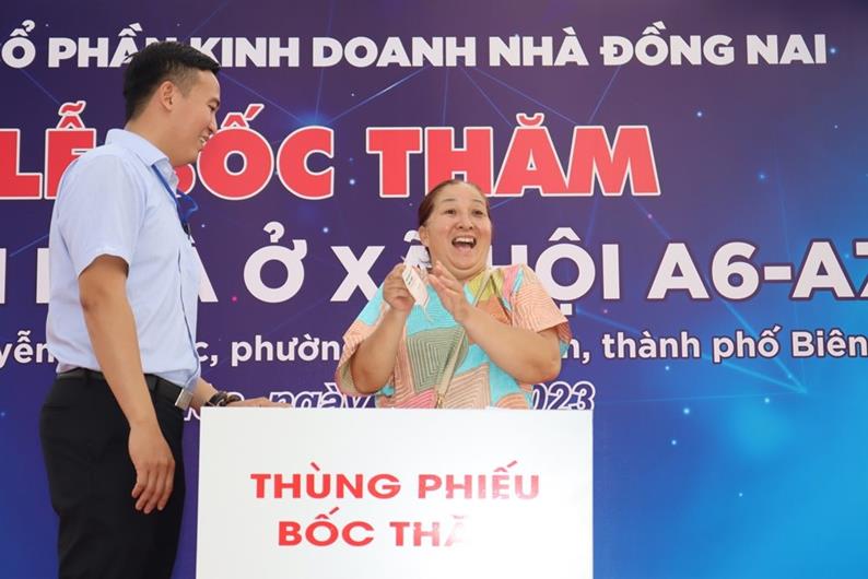(CTT-Đồng Nai) - Công ty CP Kinh doanh nhà Đồng Nai vừa tổ chức bốc thăm lựa chọn người mua nhà. Có tổng cộng 727 hồ sơ được xem xét đủ điều kiện được bốc thăm quyền mua. Đã có 19 người không đến làm thủ tục đăng ký bốc thăm, có 6 người thuộc diện ưu tiên không phải bốc thăm quyền mua.