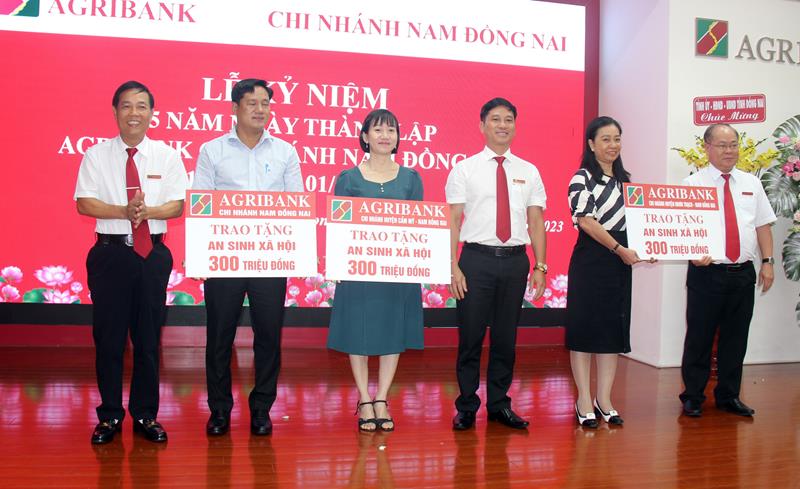 Dịp này, Agribank chi nhánh Nam Đồng Nai trao tặng 900 triệu đồng cho các công tác an sinh xã hội tại các huyện: Long Thành, Nhơn Trạch và Cẩm Mỹ.
