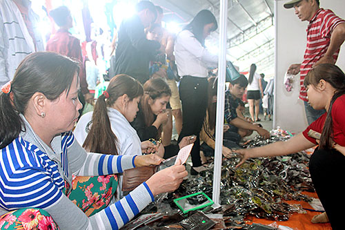 CNLĐ mua sắm tại các gian hàng hội chợ.