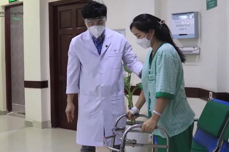 ThS-BS Trần Đức Duy Trí hướng dẫn một bệnh nhân đi lại sau khi thực hiện thành công ca phẫu thuật u thân sống gây liệt hoàn toàn 2 chi dưới